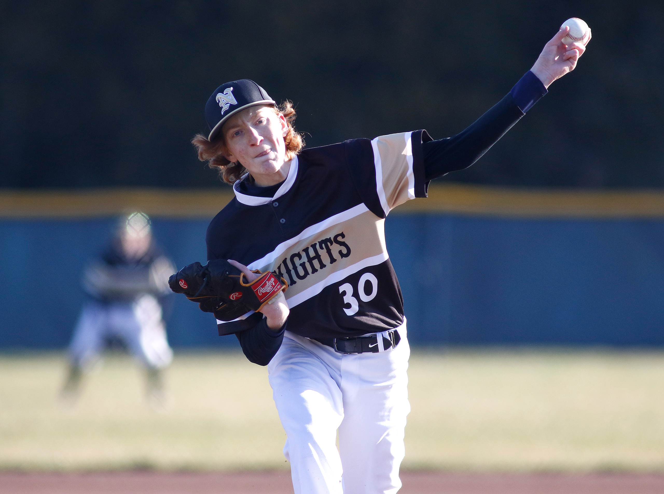 Francis Howell North’s Devon Grapenthin (30) pitches during a game against CBC at Holt High School in Wentzville, Mo., on Saturday, March 20, 2021. Michael Gulledge, Special to STLhighschoolsports.com