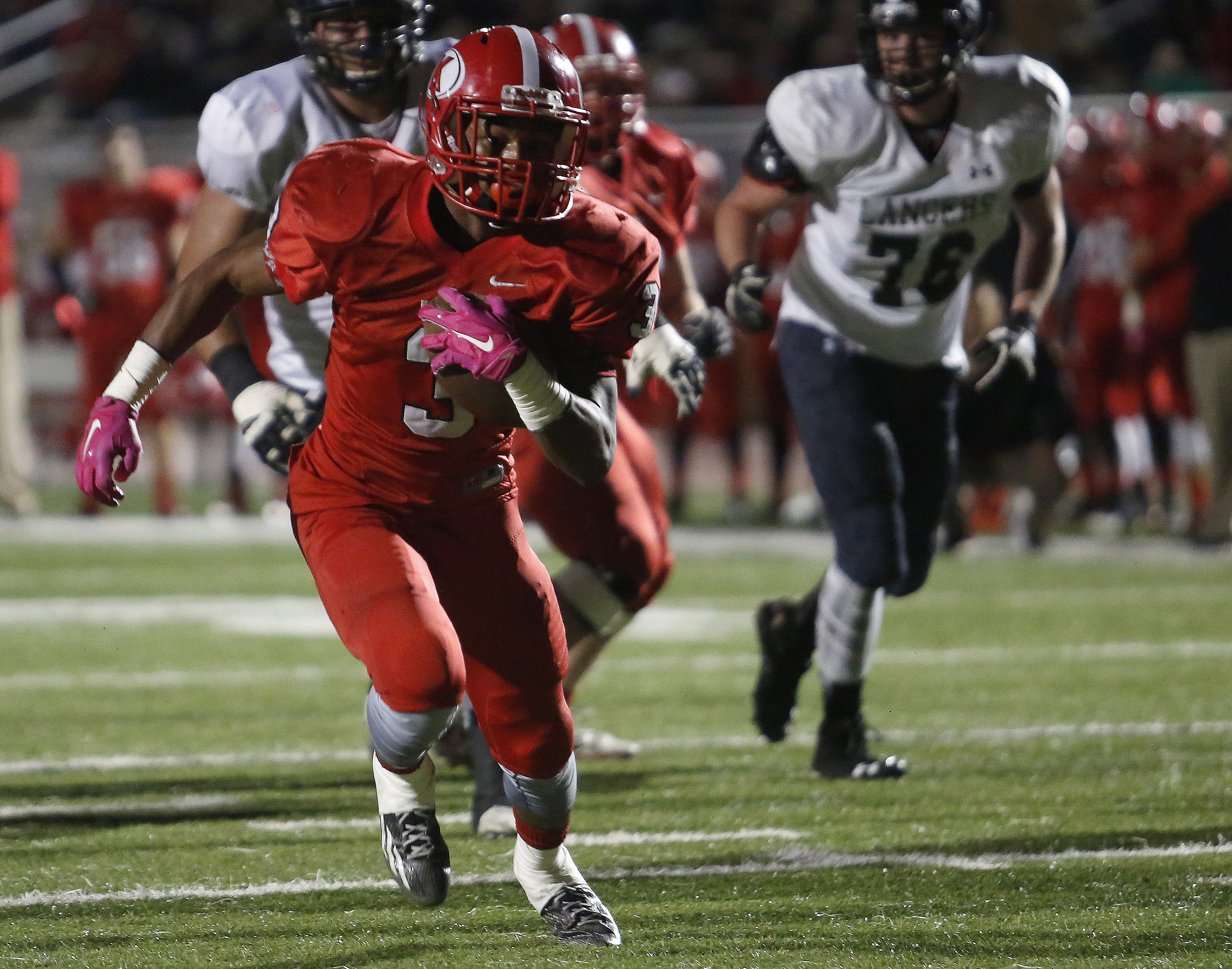 Kirkwood running back Jerod Alton (3) carries the ball against Lafayette at Kirkwood High School in Kirkwood, Mo., on Friday, Oct. 30, 2015. Michael Gulledge, Special to STLhighschoolsports.com