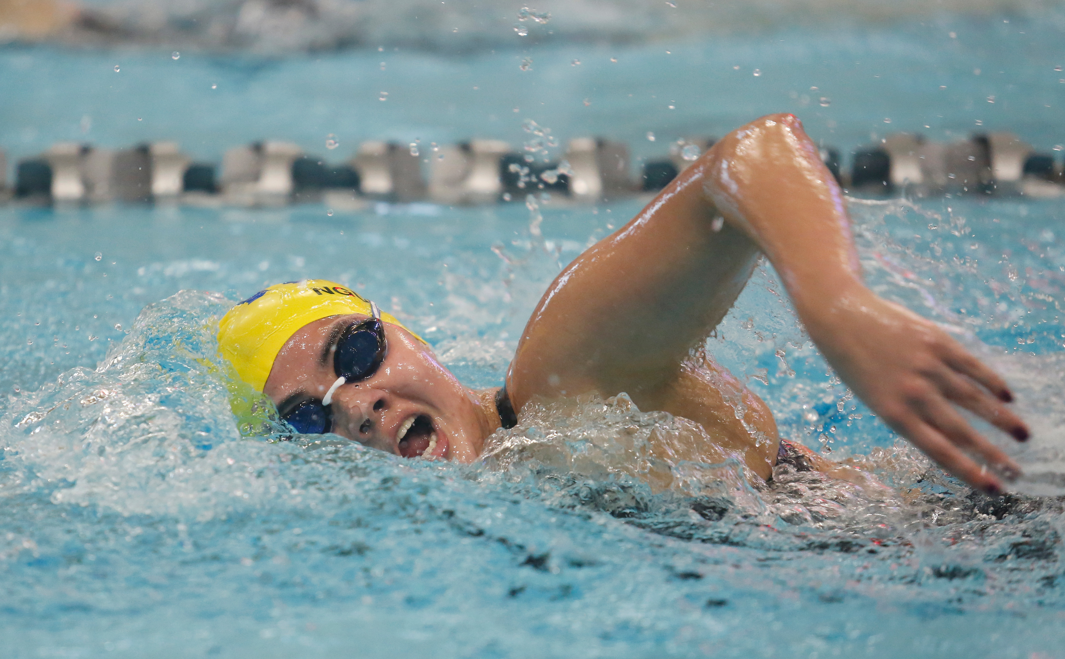 Francis Howell’s Madison Nguyen competes in the 500-yard freestyle during the preliminary round of the MSHSAA Girls Swimming and Diving Championships in St. Peters, Mo., on Feb. 19, 2016. Michael Gulledge, Special to STLhighschoolsports.com