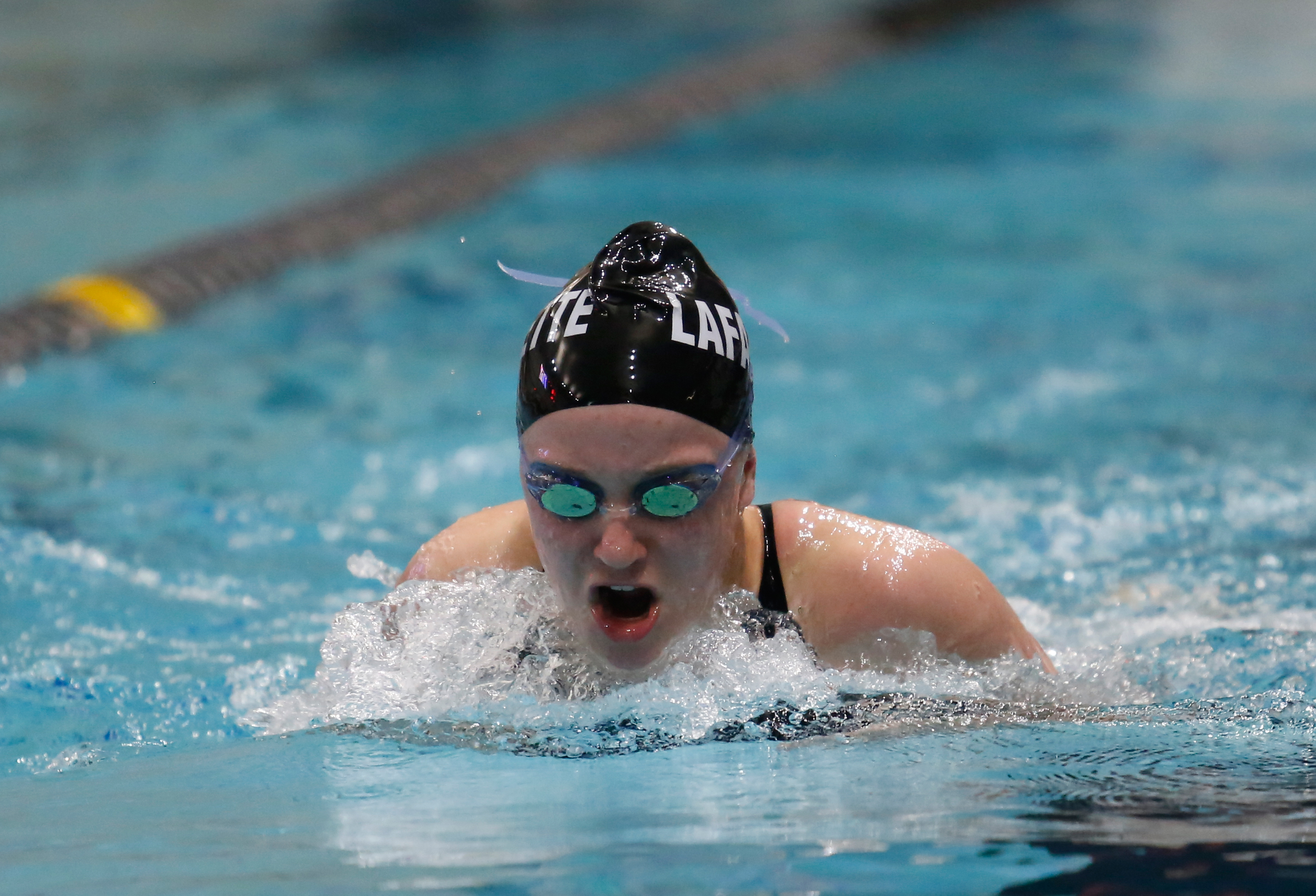 Lafayette’s Katie Haefner competes in the 100-yard breaststroke during the preliminary round of the MSHSAA Girls Swimming and Diving Championships in St. Peters, Mo., on Feb. 19, 2016. Michael Gulledge, Special to STLhighschoolsports.com